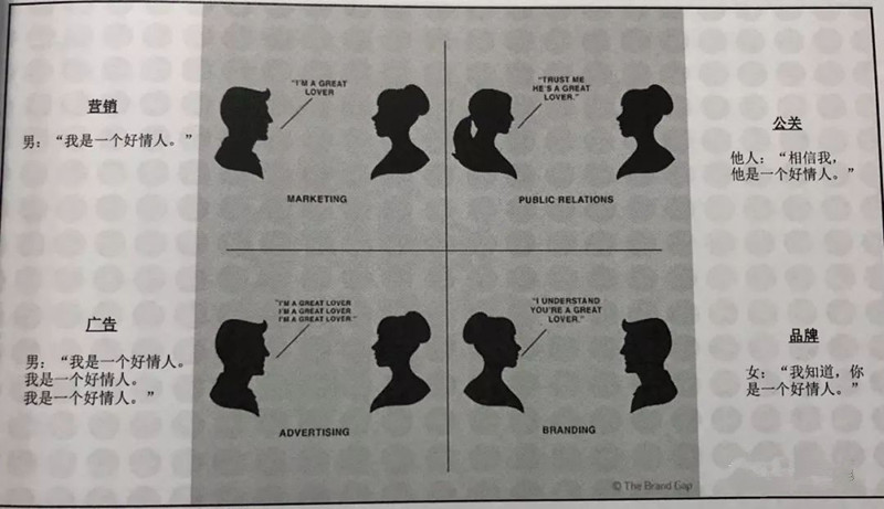 Andy在《品牌战略管理》课程用了下图解释品牌和营销、广告、公关的区别,分享给大家,体会中间的区别。
