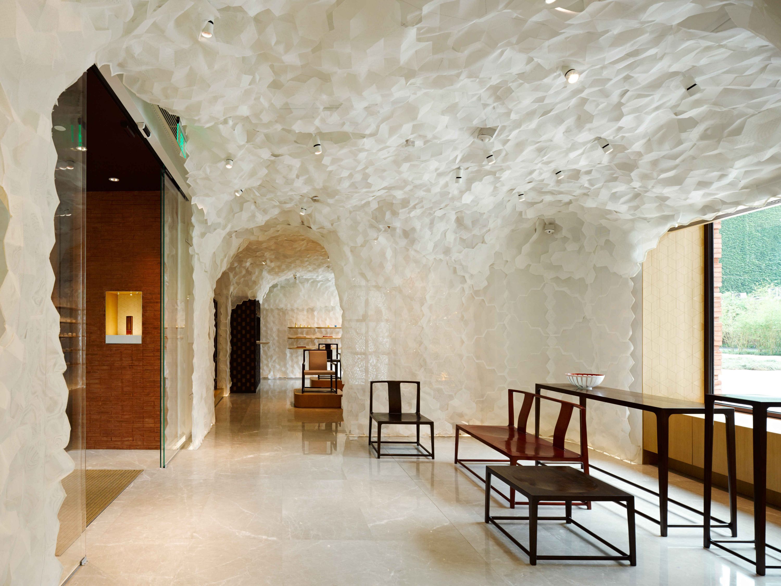 按照蒋琼耳的设计,上下是一个彻头彻尾的本土高端的生活方式品牌,产品多由中国传统工匠制作而成,如薄胎瓷瓶、紫檀家具、竹编白瓷茶具、羊绒毡毯等。“经过数年积累,目前和我们合作的手工作坊已经有50、60个。”蒋琼耳透露,这些作坊都在中国境内,而原材料绝大多数也源自国内。除了少部分的材料需要到周边的国家收集,比如上好的羊绒需要到外蒙古采购。