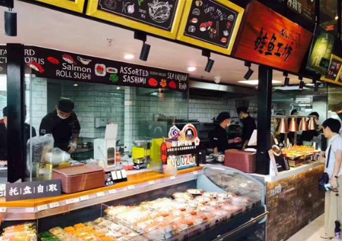 此外,由于采取了合伙人制度,超级物种500平米的占地面积里,融合了鲑鱼工坊、波龙工坊、盒牛工坊、健康生活有机馆、生活厨房、咏悦汇、麦子工坊、静候花开花艺馆8个特色板块。永辉试图通过增加消费者的留店时间,带动更多的消费,从多方面提升自己的到店转化率。